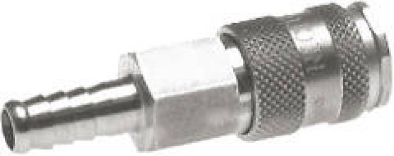 Die Ausführung mit Schlauchtülle ermöglicht die direkte, einfache Konfektionierung von Industrieschläuchen mittels Schlauchschellen oder Klemmen, ohne zusätzliche Gewindefittings. Diese Kupplungsdosen sind kompatibel zu gängigen Industriestandards für Nennweite 7,2 (z.B. nach DIN EN ISO 4414). Die Kugelverriegelung sorgt für eine sichere und schnelle Verbindung beim Einstecken des passenden Stecknippels.