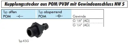 Werkstoffe: Körper: POM schwarz, Federn und Ventil: Edelstahl 1.4310, Dichtungen: NBR