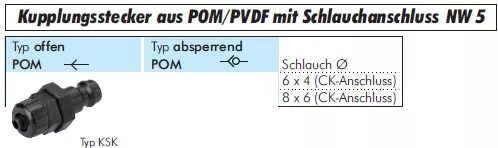 Werkstoffe: Körper: POM schwarz, Federn und Ventil: Edelstahl 1.4310, Dichtungen: NBR