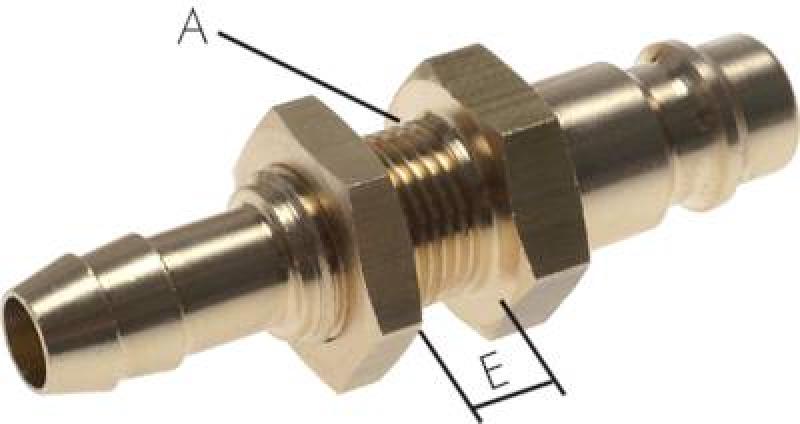 Robuste Kupplungsstecker NW 7,2 aus Messing mit Schlauchtülle und Schottgewinde
