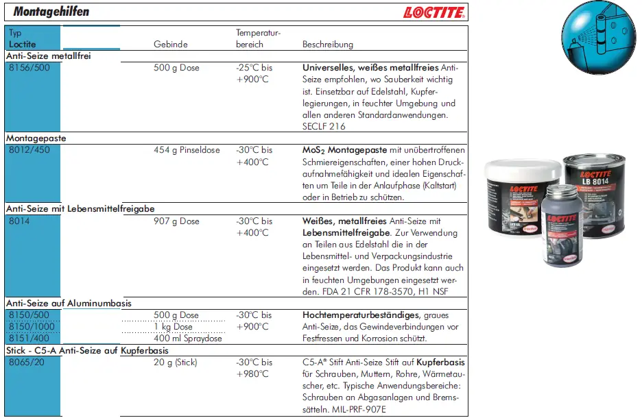 Preview: Anti-Seize Paste, Loctite 8065, 8150, 8156, 8014