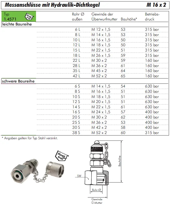 Werkstoffe: Edelstahl 1.4571, Dichtungen: FKM