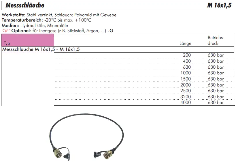Sorgen Sie für eine zuverlässige Verbindung zwischen Messstelle und Manometer. Wählen Sie jetzt die passende Länge Ihres M 16x1,5 Messschlauchs aus Stahl!