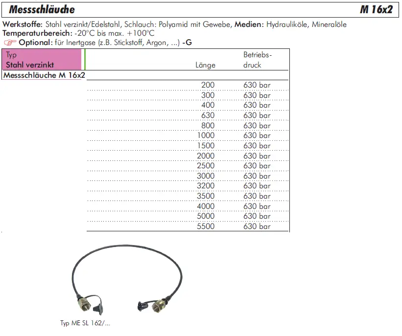 Sorgen Sie für eine zuverlässige Verbindung zwischen Messstelle und Manometer. Wählen Sie jetzt die passende Länge Ihres M 16x2 Messschlauchs aus Stahl!