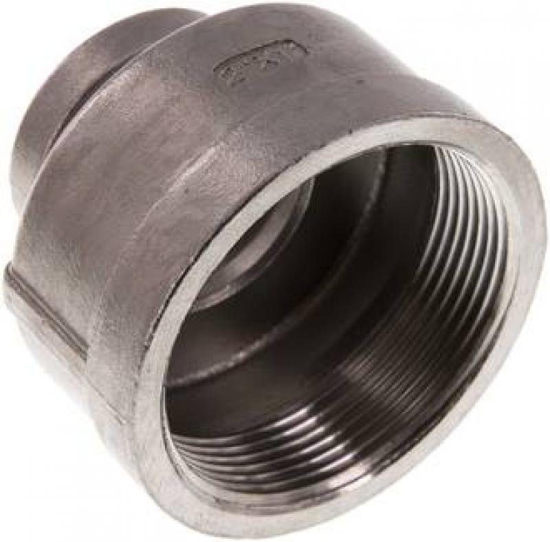 Mobile Preview: Muffe und Reduziermuffe aus Edelstahl 1.4408, runde Ausführung, bis 16 bar, Rp- oder NPT-Gewinde, alle Größen