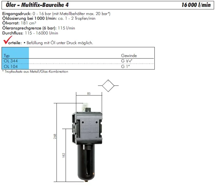 Startseite » Manometer & Druckregler » Druckregler, Filterregler, Filter & Öler Aventics Serie Multifix » Öler Baureihe Multifix Baureihe 4, 16000 l/min, alle Ausführungen