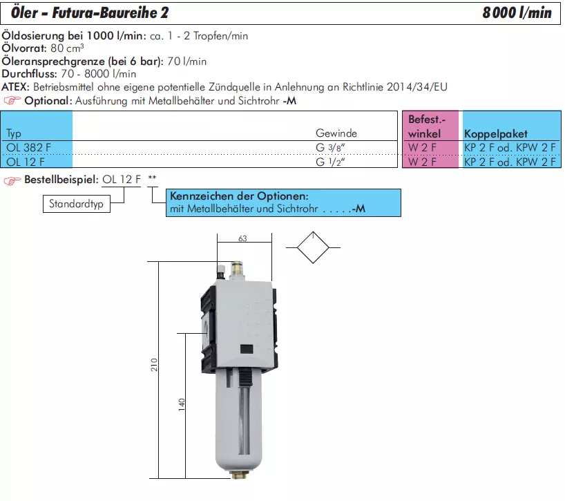High-Flow Pneumatik-Öler Aventics Futura Baureihe 2 – Maximale Schmierung bis 8000 l/min