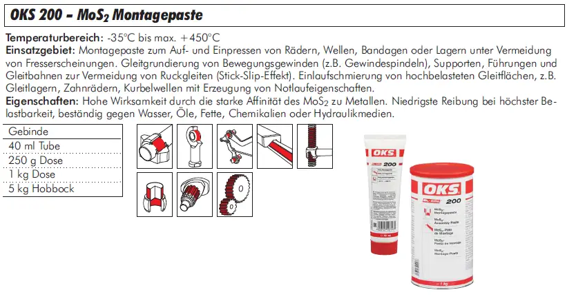 Startseite » Industriebedarf » OKS® Hochleistungs-Pasten » OKS 200 - MoS2 Montagepaste, verschiedene Gebinde