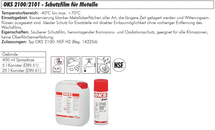 Startseite » Industriebedarf » OKS® Korrosionsschutzprodukte » OKS 2100/2101 - Schutzfilm für Metalle, verschiedene Gebinde