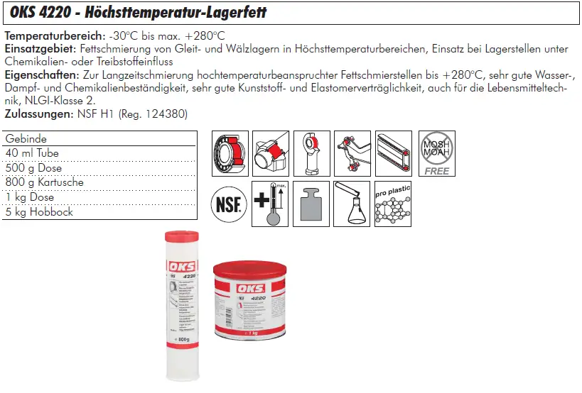 OKS 4220 - Höchsttemperatur-Lagerfett, verschiedene Gebinde