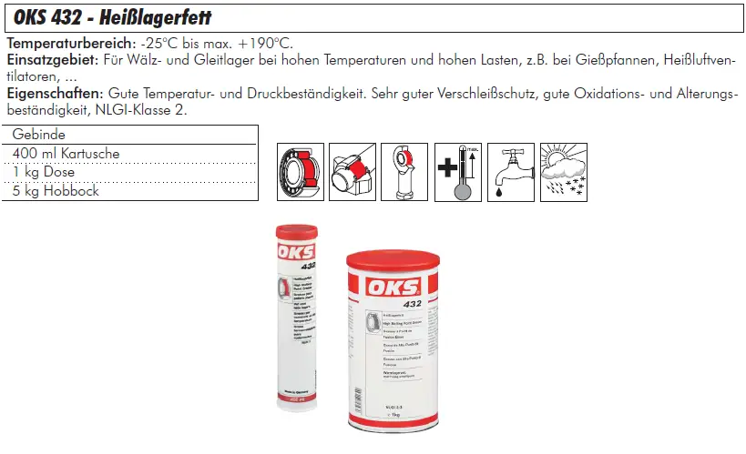 Startseite » Industriebedarf » OKS® Spezialfette & Schmierfette » OKS 432 - Heißlagerfett, verschiedene Gebinde