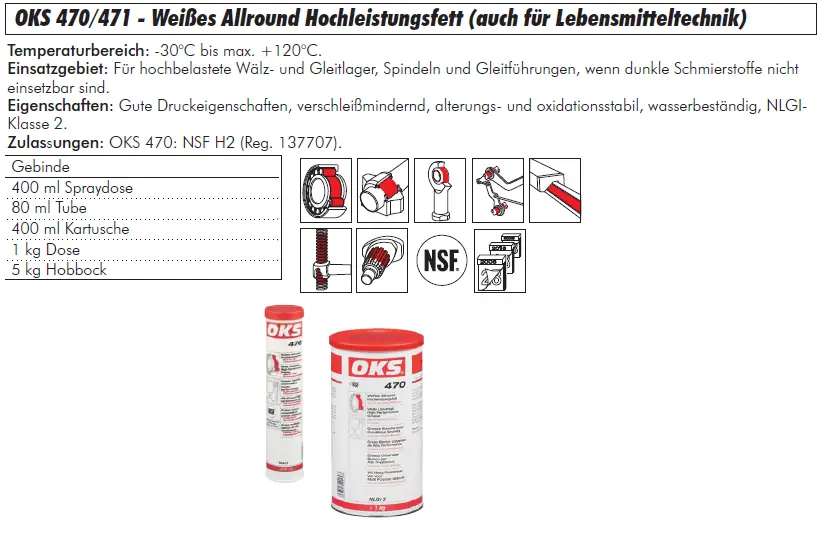 Für hochbelastete Wälz- und Gleitlager, Spindeln und Gleitführungen, wenn dunkle Schmierstoffe nicht einsetzbar sind.