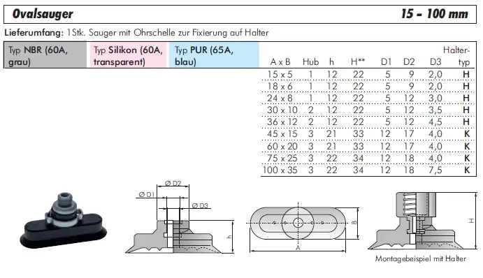 Ovalsauger (ohne Halter), 15 - 100 mm, alle Typen