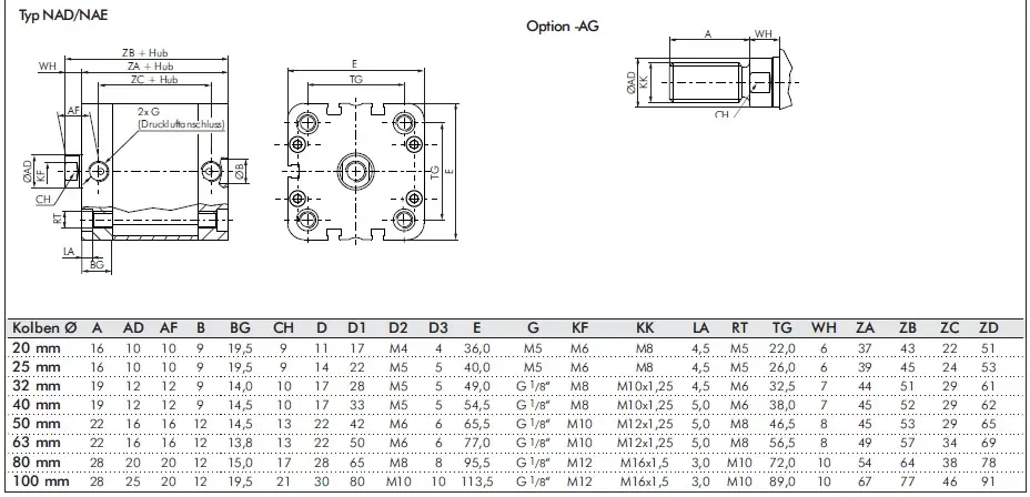 Werkstoffe: Kopf und Fuß: Aluminium, Zylinderrohr: Aluminium eloxiert, Kolbenstange: Edelstahl, Dichtung: NBR/Polyurethan
