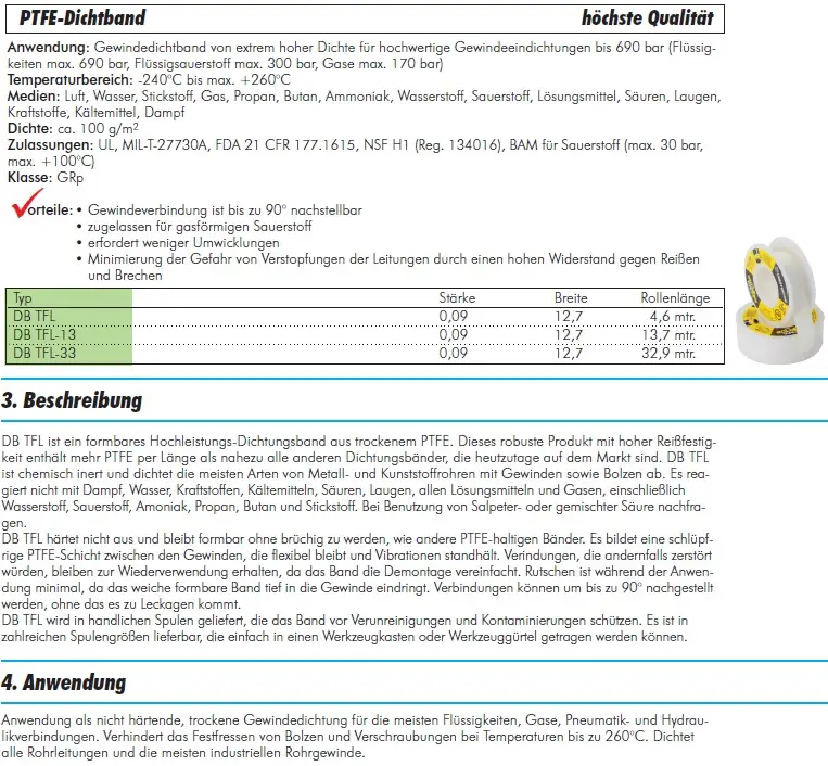 Das ultimative PTFE-Dichtband – Maximale Dichte, chemische Beständigkeit und diverse Rollenlängen