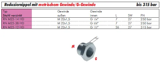 Hydraulik-Reduziernippel bis 315 bar – metrisch & G-Gewinde