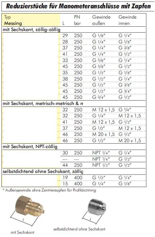 Spezielle Passform für Zentrierzapfen: Garantiert optimale Dichtigkeit nur in Verbindung mit Manometern, die einen Zentrierzapfen besitzen – keine Standardreduzierung.