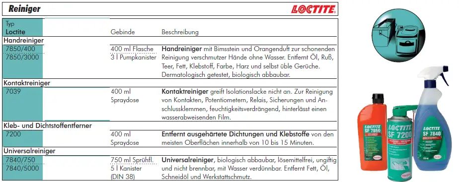 Für Elektronik & empfindliche Teile: LOCTITE® SF 7039 (früher 703) ist ein Spezialreiniger, der sich schnell verflüchtigt und keine Rückstände hinterlässt, ideal für Elektromotoren und Präzisionsgeräte.