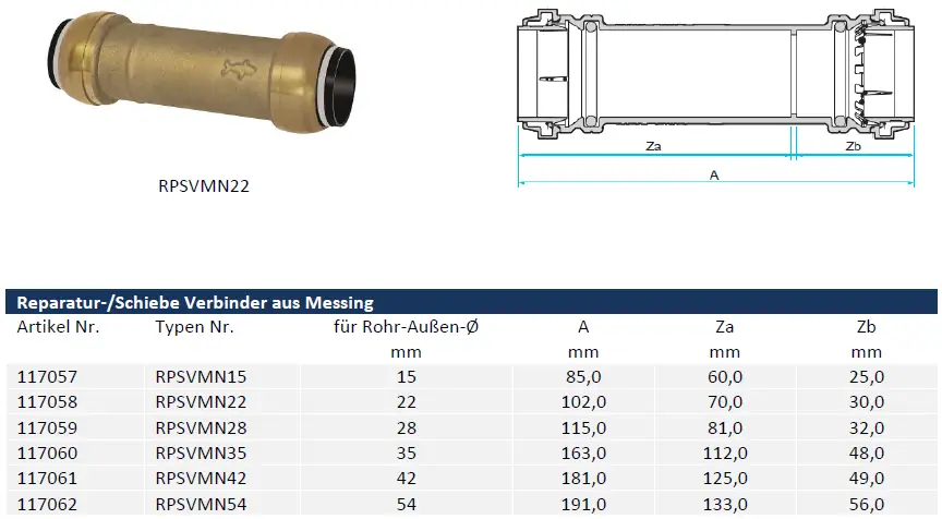 Reparatur-Schiebeverbinder »sharkbite« aus Messing für schnelle, sichere Rohrreparaturen. Einfaches Einschieben, robust und langlebig – ideal für Sanitär, Installation und Industrie.