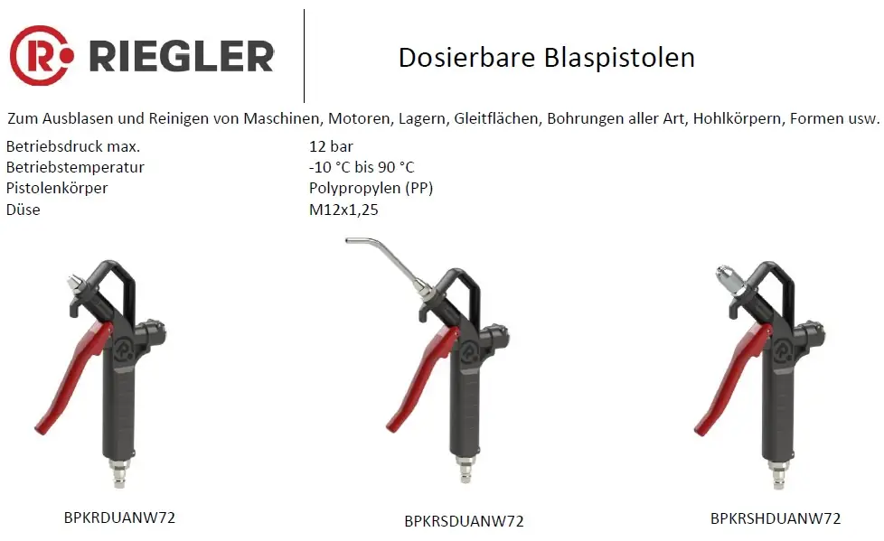 Dosierbare Riegler Kunststoff-Ausblaspistolen ohne Düse für präzise Druckluftanwendungen