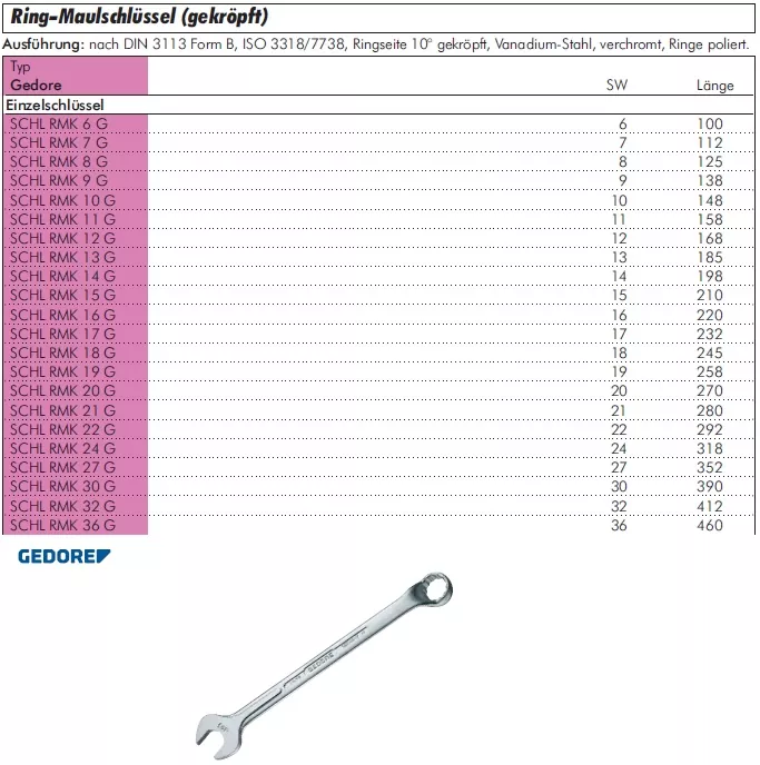 Gedore® Ring-Maulschlüssel gekröpft – präzise, robust und ergonomisch