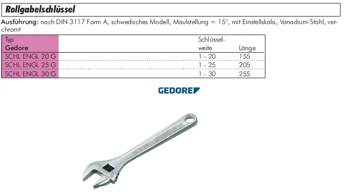 Gedore® Rollgabelschlüssel – robust, präzise und verstellbar