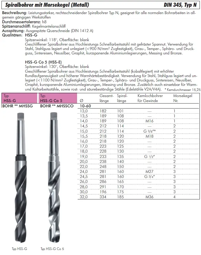 Produkttyp: Spiralbohrer Typ N mit Morsekegel