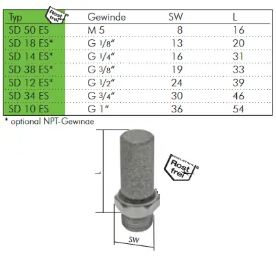 Dank des NPT-Gewindes ist der Schalldämpfer einfach und präzise in bestehende Anlagen integrierbar, wodurch eine optimale Geräusch- und Durchflusskontrolle gewährleistet wird.