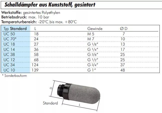 Der Schalldämpfer aus Kunststoff aus porösem Niederdruck-Polyethylen reduziert zuverlässig Geräusche in Pneumatiksystemen, insbesondere bei Niederdruck-Anwendungen.