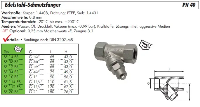Bauart: Inline-Schmutzfänger