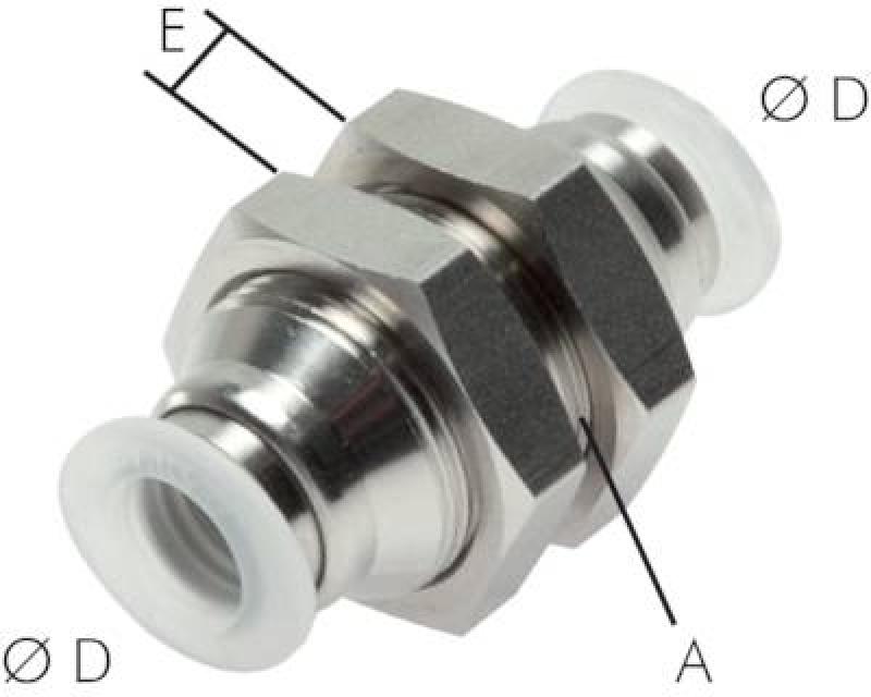 Gerade Schottwand-Steckverbinder aus Polypropylen, FDA-konform und chemisch beständig für hygienische Anwendungen durch Paneele hindurch