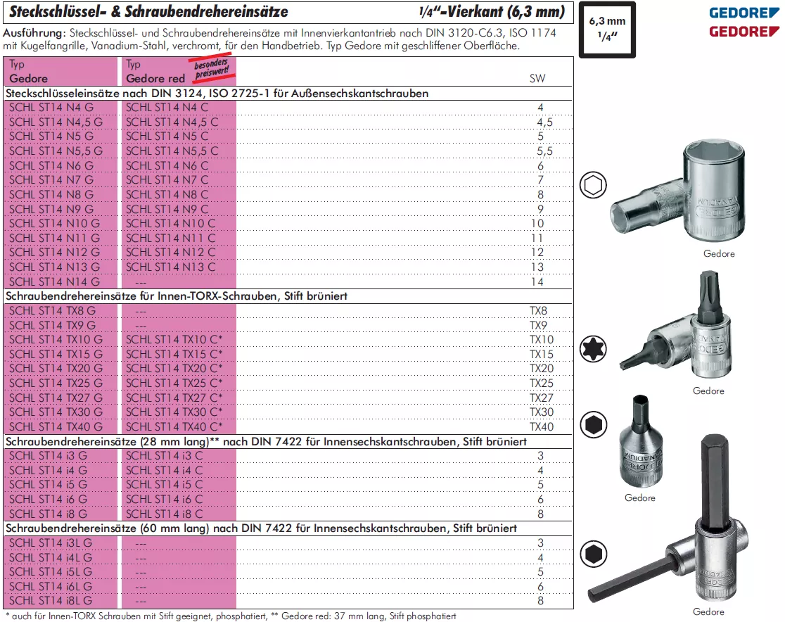 Typ: Steckschlüssel- & Schraubendrehereinsätze Gedore Red®