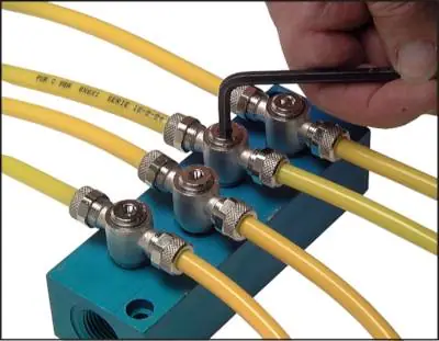 Zur optimalen Positionierung die Verschraubung zunächst handfest anziehen, ausrichten und anschließend mit einem Gabelschlüssel für Pneumatikarmaturen vorsichtig kontern, um die Dichtwirkung sicherzustellen.