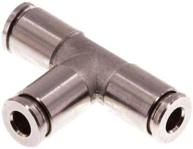 Zertifizierte T-förmige Push-In-Kupplung für höchste Hygieneansprüche – Gefertigt aus Edelstahl 1.4404 / FKM FDA-konform – bis 20 bar
