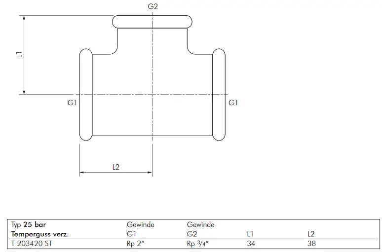 Reduziertes Temperguss T-Stück verzinkt – Hochbelastbarer Fitting bis 25 bar