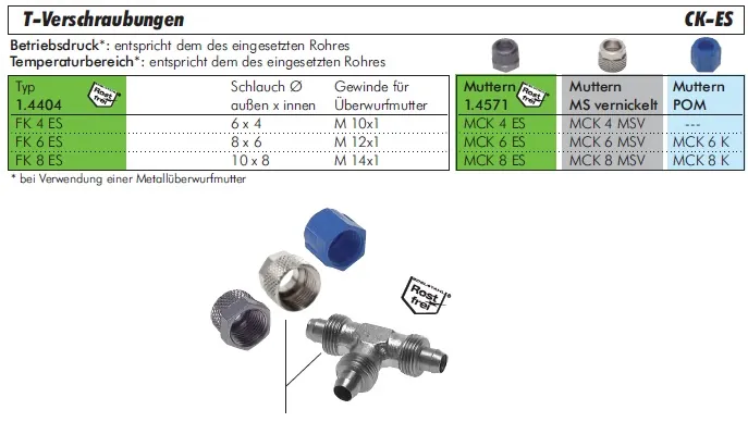 Startseite » Leitungsverbinder » CK-Schlauchverschraubungen aus Messing vernickelt, Edelstahl, POM & Aluminium » CK-Verschraubungen Messing vernickelt & Edelstahl » T-Verschraubungen Edelstahl OHNE ÜBERWURFMUTTER, alle Größen