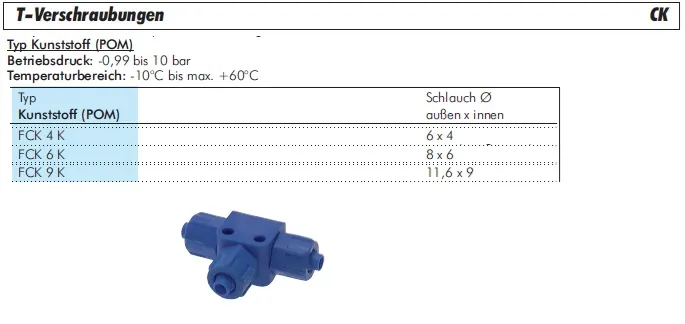Die CK-T-Verschraubung aus POM ist eine robuste Lösung für zuverlässige pneumatische Verbindungen, insbesondere bei anspruchsvollen technischen Rahmenbedingungen und dynamischen Belastungen.
