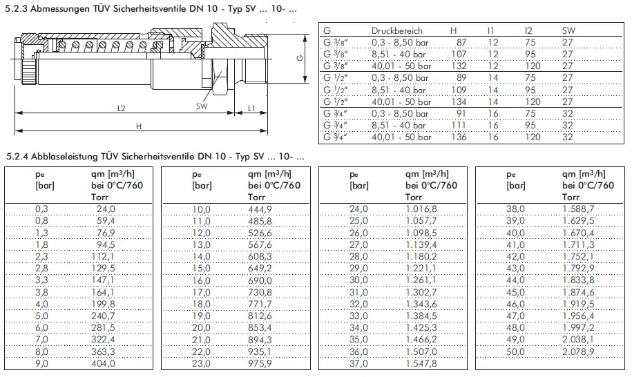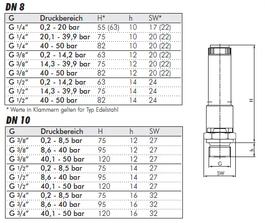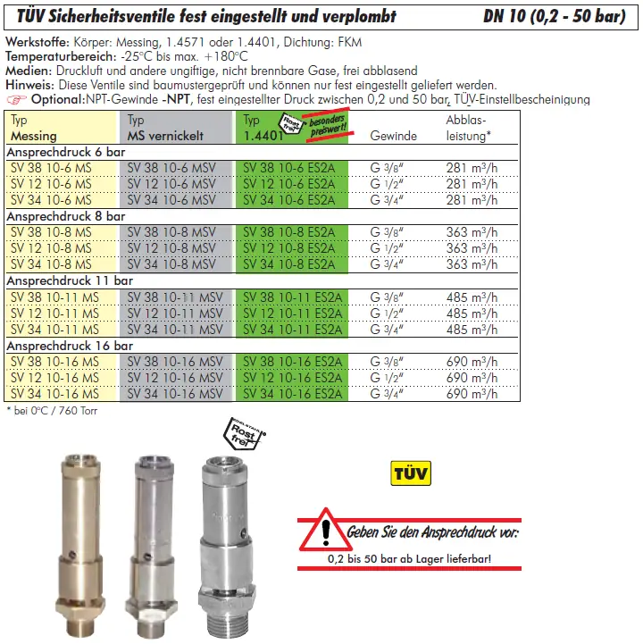 Diese Ventile sind baumustergeprüft und können nur fest eingestellt geliefert werden.