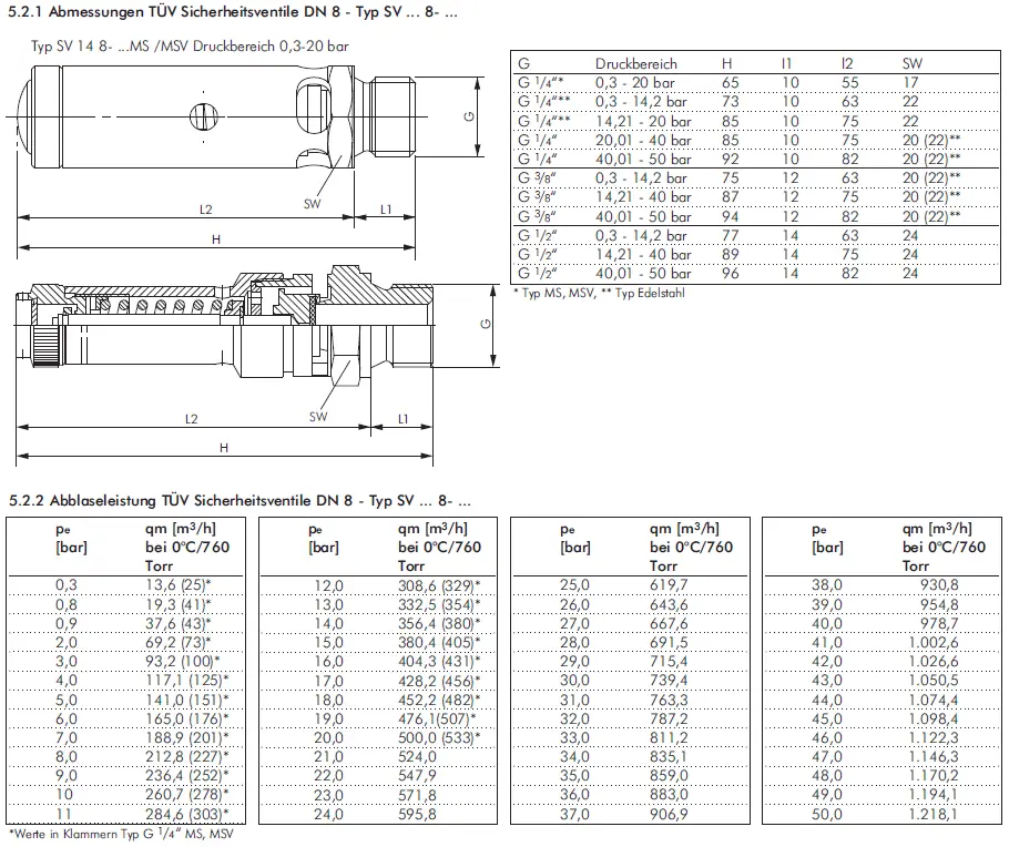 Diese Ventile sind baumustergeprüft und können nur fest eingestellt geliefert werden.