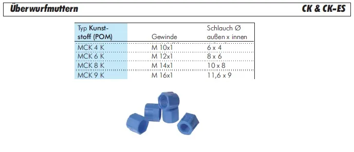 Diese CK-Überwurfmutter aus Polyoxymethylen (POM) ist eine essenzielle Komponente für das gleichnamige, robuste CK-Verschraubungssystem. Im Gegensatz zu einfachen Steckverbindungen fixiert diese Mutter den Schlauch mittels eines separaten Klemmteils (das nicht im Lieferumfang enthalten ist) und sorgt so für eine zugfeste und vibrationssichere Verbindung. Die Mutter wird auf das Außengewinde des Ringstücks oder des Grundkörpers geschraubt und übt beim Anziehen den notwendigen Pressdruck aus.