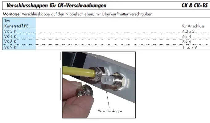 Systemkompatibilität als passgenaues Zubehör für alle gängigen CK- und CK-ES-Verschraubungsgrößen.
