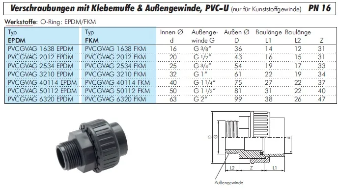 Benötigen Sie eine sichere Gewindeanbindung an Ihr PVC-U System? Wählen Sie jetzt die passende Größe und bestellen Sie Ihre Verschraubungen für eine schnelle Lieferung ab Lager!
