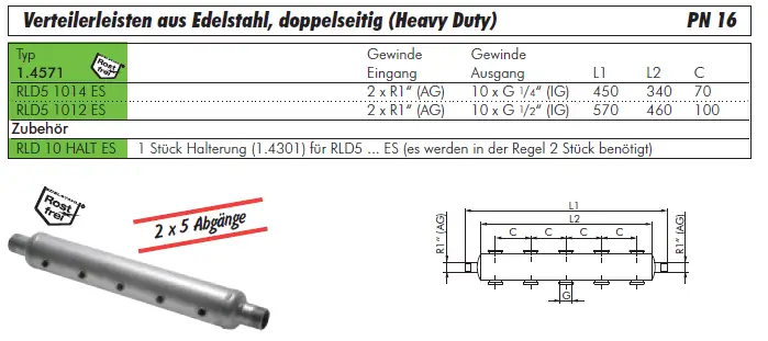 Hochleistungs-Edelstahl-Verteilerleiste PN 15 – Doppelseitig, rostfrei für alle Medien