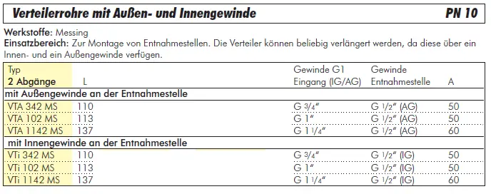 Zur Montage von Entnahmestellen. Die Verteiler können beliebig verlängert werden, da diese über ein Innen- und ein Außengewinde verfügen.