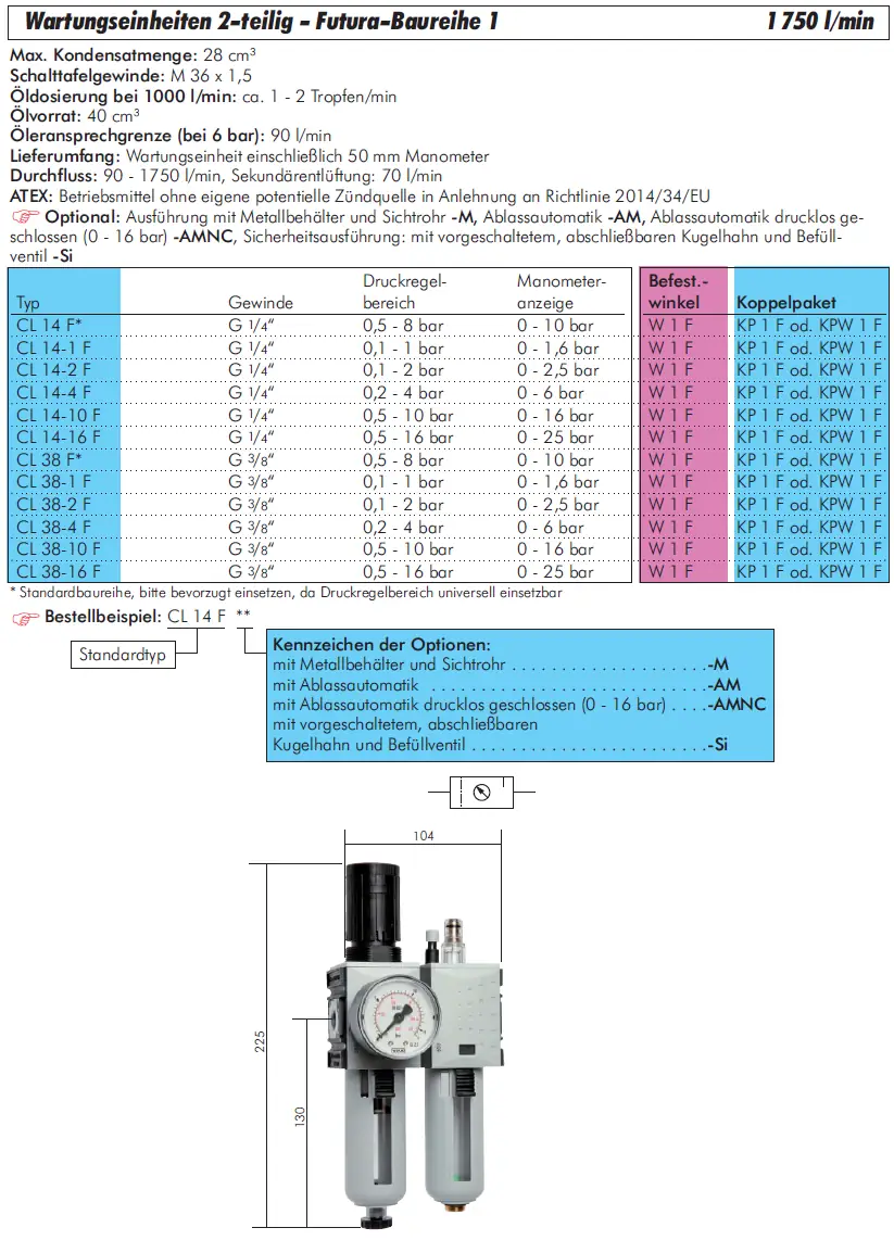 2-teilige Wartungseinheit Aventics Futura Baureihe 1 – Die All-in-One Lösung bis 1750 l/min