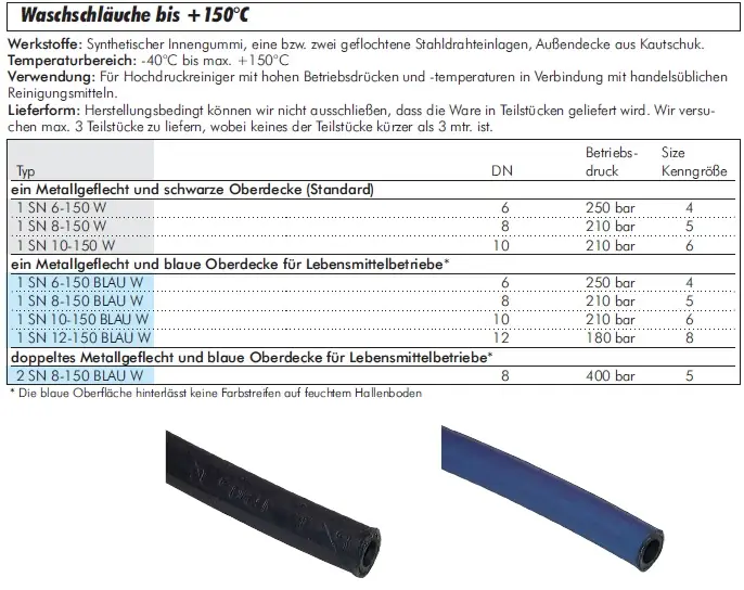 Unsere Waschschläuche bis +150 °C als Meterware bieten hohe Flexibilität und Hitzebeständigkeit für industrielle Reinigungs- und Hochtemperaturanwendungen. Sie sind robust, langlebig und für alle gängigen Größen verfügbar.