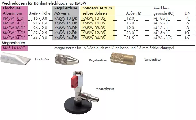 Zubehör für Kühlmittelschläuche aus Metall – Wechseldüsen & Magnethalter mit Außengewinde