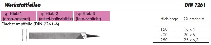 Produkttyp: Werkstattfeilen, Flachstumpffeile DIN 7261-A