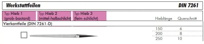 Produkttyp: Werkstattfeilen, Vierkantfeile DIN 7261-D