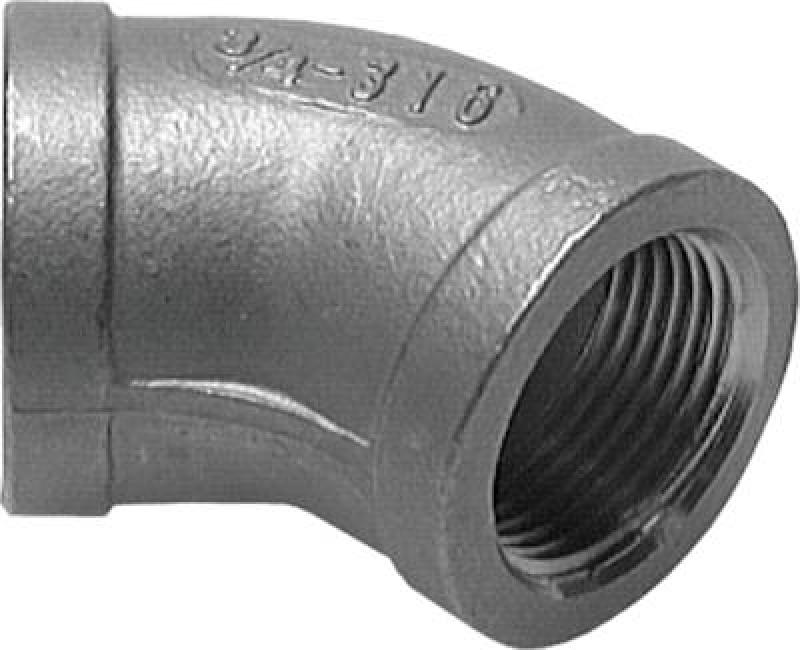 Die beidseitigen Innengewinde (IG/IG) nach ISO 7/1 ermöglichen eine einfache und zuverlässige Montage. Dies ist der ideale, langlebige Edelstahl-Fitting für Anwendungen, bei denen die 45°-Geometrie benötigt wird. Wir führen alle gängigen zölligen Größen ab Lager.
